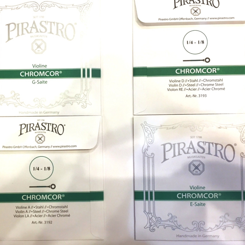 お子様のヴァイオリンにはそのサイズに合った弦を掛けます。