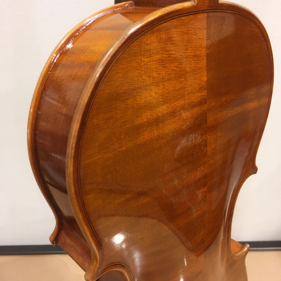 首都ブカレストから北に300㎞、カルパチア山脈を越えた北部の小都市Reghin(レギン)はルーマニアの弦楽器主要製作地。Andrei SIMON(アンドレイ・シモン)はこのReghinにあった旧公団出身の15名の職人による少数精鋭の弦楽器工房です。充分に乾燥させたカルパチアン・メイプルを使用、持った時の軽さに驚かれるはずです。ドイツ風の外型製法。ニスはイタリア風のフル・ヴァーニッシュ仕上げ。
